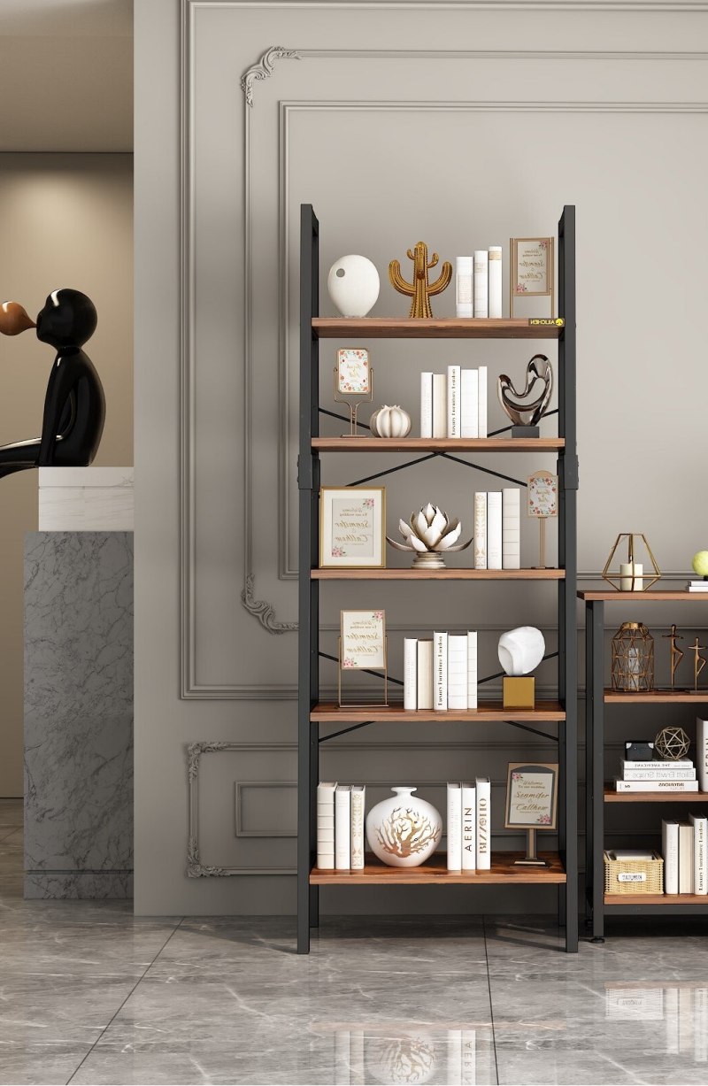 Enhance your space with our versatile 5 Tier Ladder Shelf. Made from high-quality wood and durable metal, this shelf is not only sturdy but also adds a touch of modern elegance to any room.