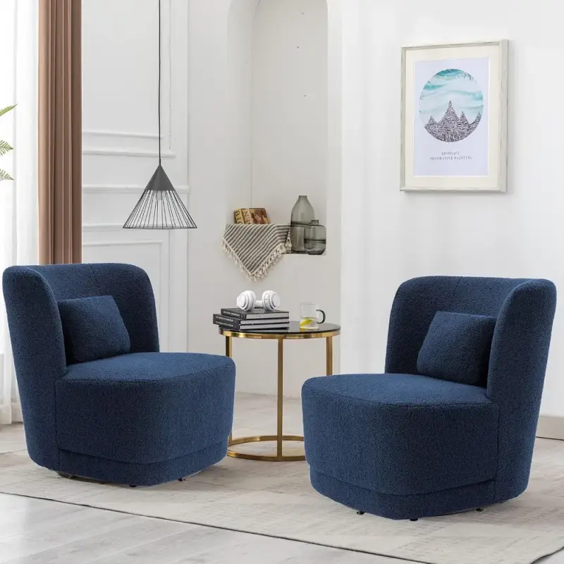 Blue Swivel Accent Chair - Boulce Upholstery - Set Of 2