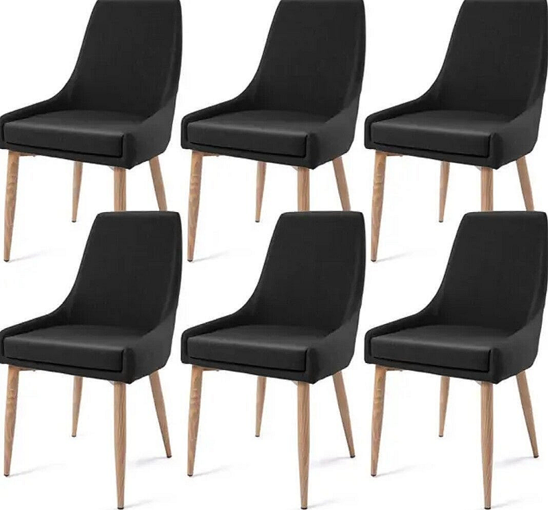 Set of 6 Fabric Dining Chairs - Black